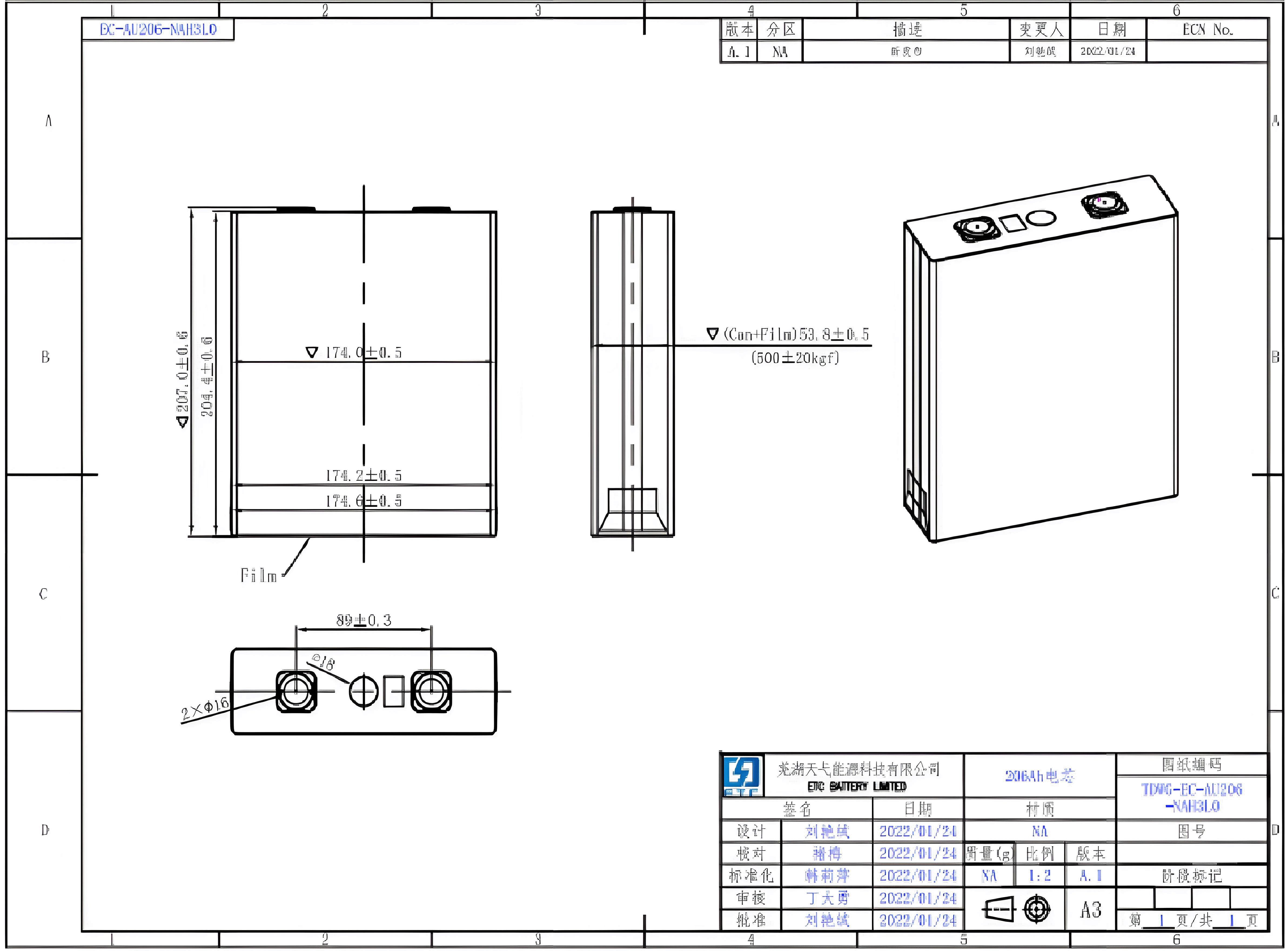 ETC EC-AU206-NAH3L0 3.2V206Ah 磷酸鐵鋰電池規格